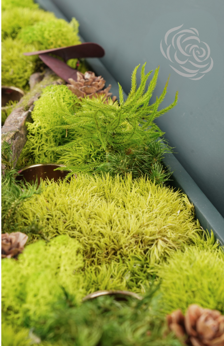 El musgo preservado transforma paredes, cuadros y superficies en elementos vivos. Ideal para proyectos de interiorismo, oficinas y decoración vertical.
